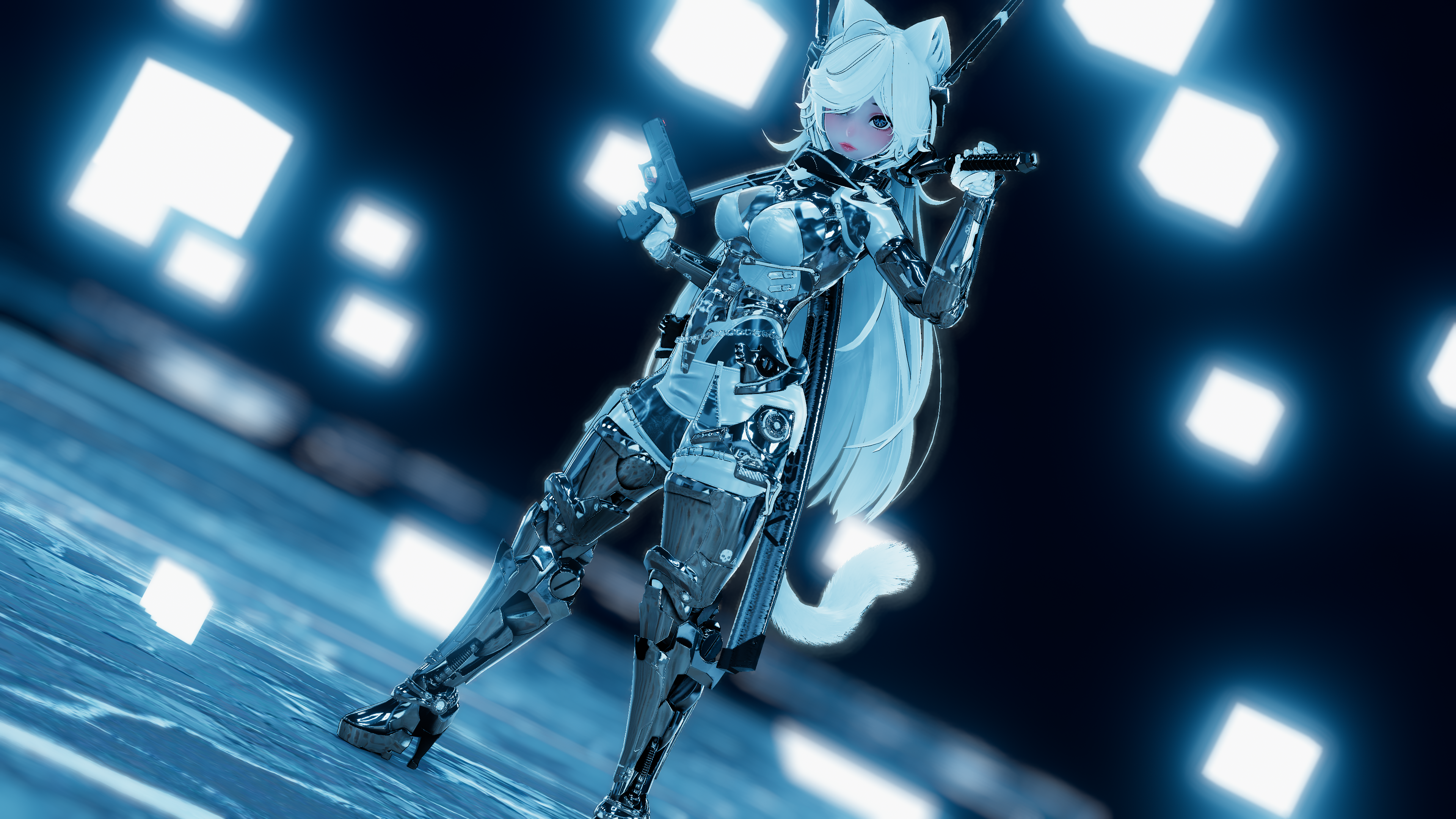 Freya the Battle Bunny (also with cat mode toggle) the frontliner of the squad, she's graceful and quick, armed and armored and prepared for up close combat.